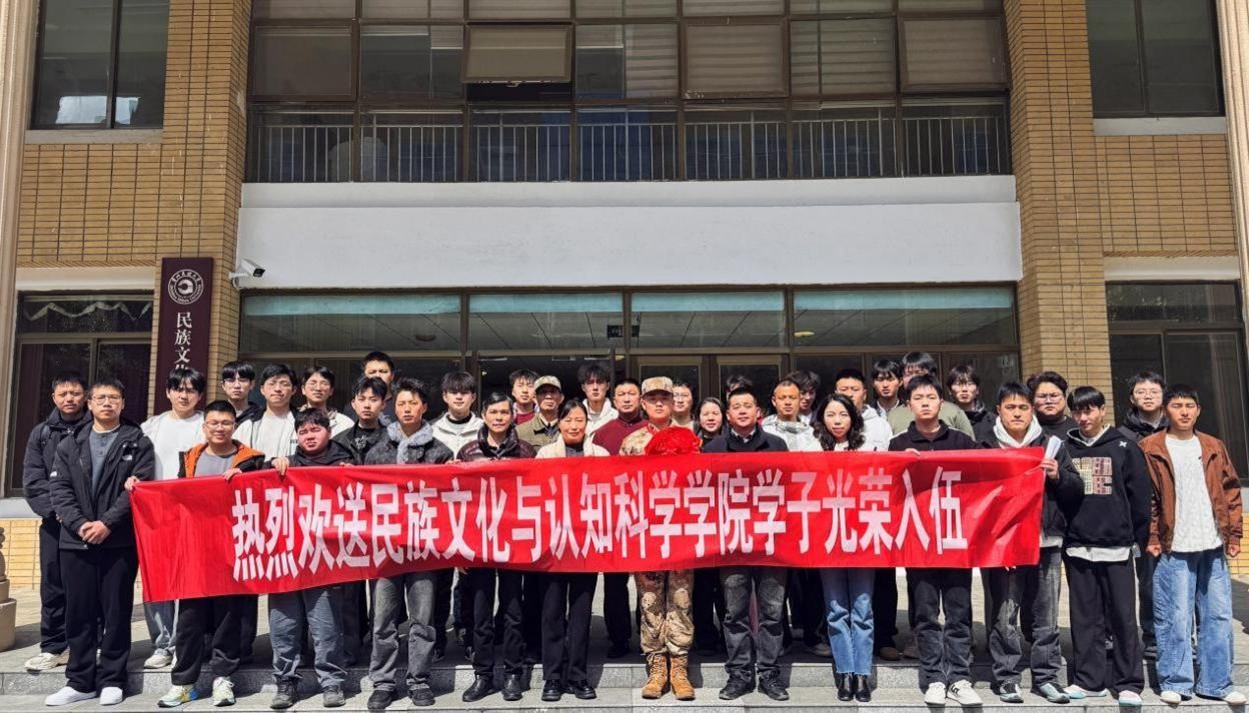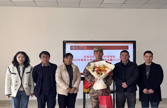 2026年3月11日,在学校深入推进“贵山石榴红”思政育人工程、同步开展“贵山石榴红”师生共植民族团结林活动,厚植全校师生家国情怀、凝聚强军报国力量的浓厚氛围下,民族文化与认知科学学院举办2026年春季大学生入伍欢送会暨2026年下半年征兵工作启动会,欢送2026届认知科学与技术专业毕业班学生高兴华携笔从戎,同时正式开启学院下半年征兵工作。学院党委书记王朝举,党委副书记林晓滔,副院长王国超,跟班干部甘伟,辅导员蔡菲,高兴华家长出席会议、学院学生代表参加会议。